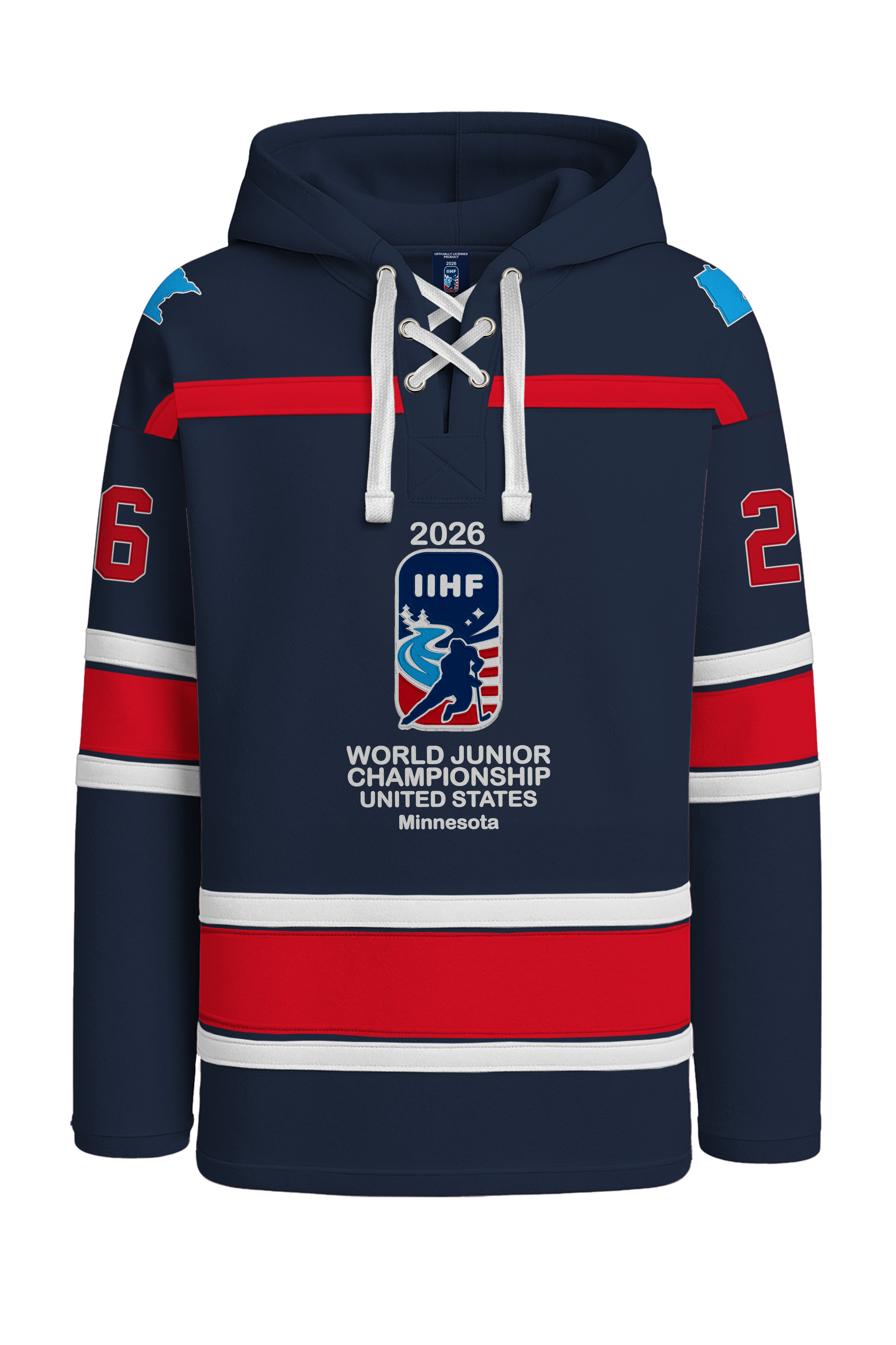 IIHF World Juniors 2026 Navy Embroidered Lace Hoodie