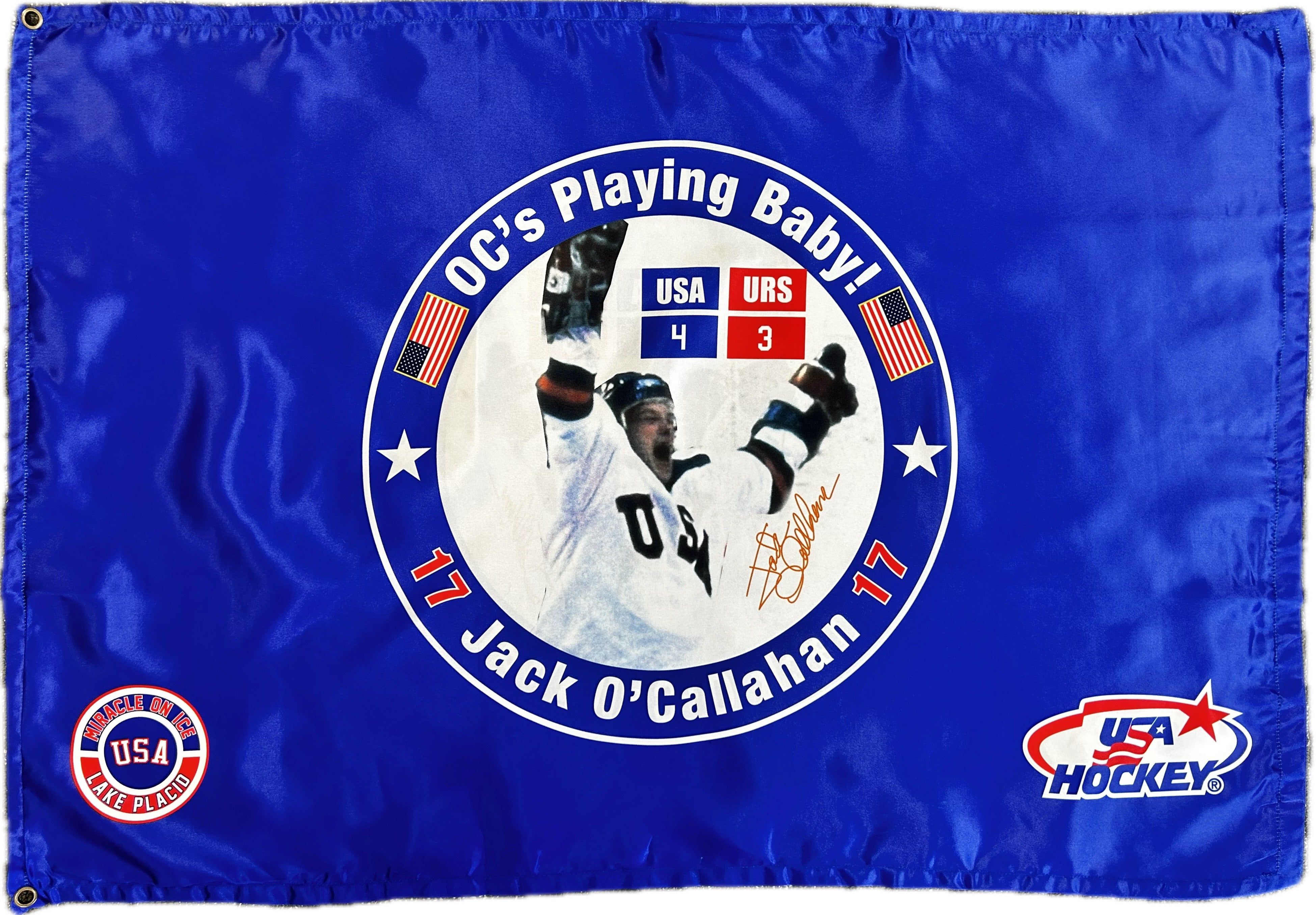 Jack O'Callahan Officially licensed Miracle on Ice 1980 "O.C. is playing, baby!" Flag Size: 24" Tall X 36" Long