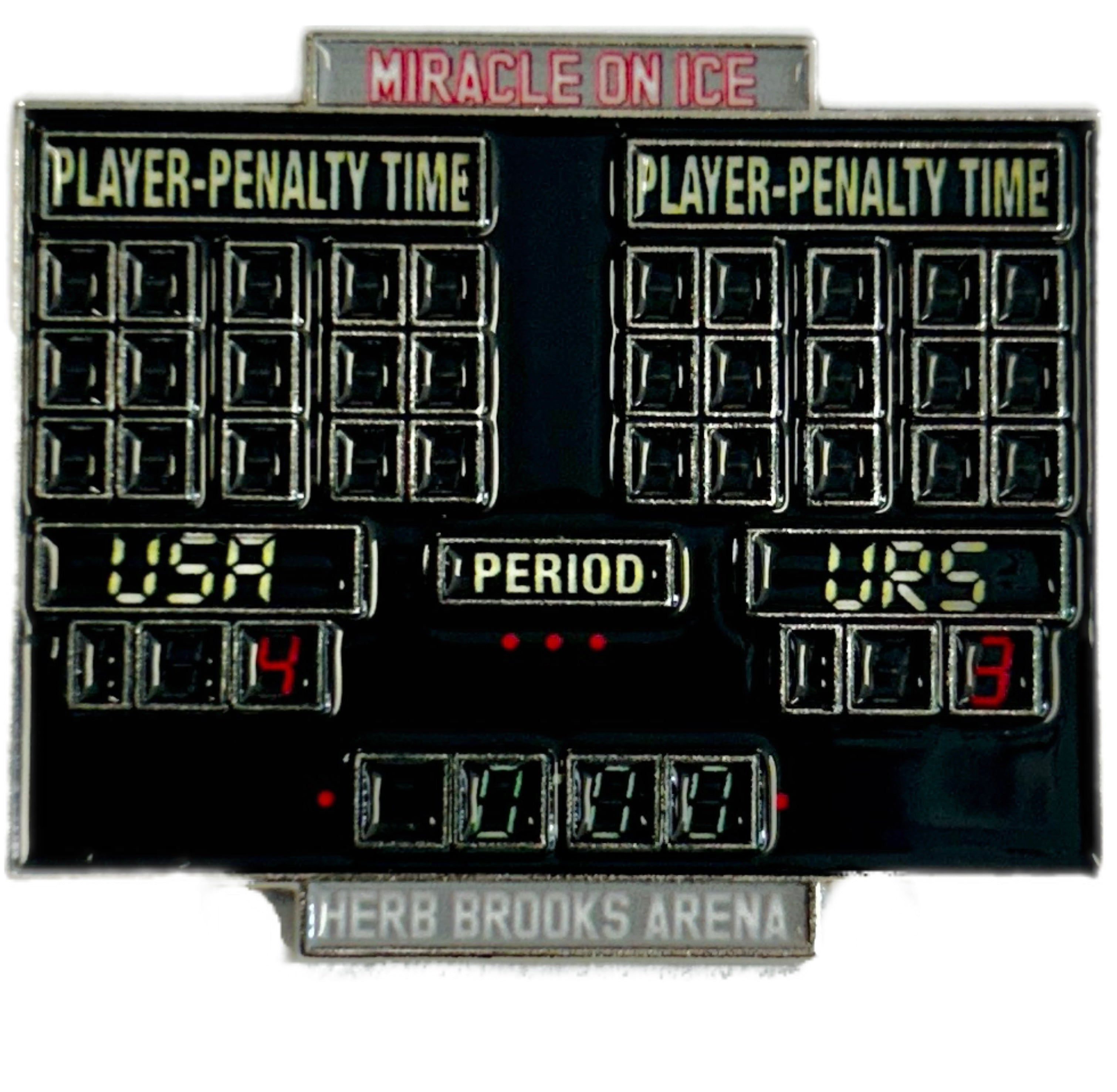 Experience the historic Miracle on Ice game with this limited edition official Lapel Pin of the 1980 USA Hockey Team at Lake Placid. Relive the moment with the iconic "Scoreboard Final Score" captured in stunning detail. Perfect for any hockey fan or collector. Get yours before they're gone!
