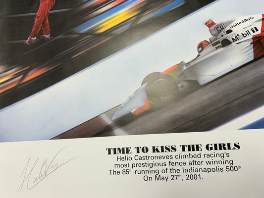 Helio Castroneves (Indy 500 Hall of Fame 5/22/25) Signed Lithograph 20X26 inch “Time to kiss the girls” May 27th 2001
