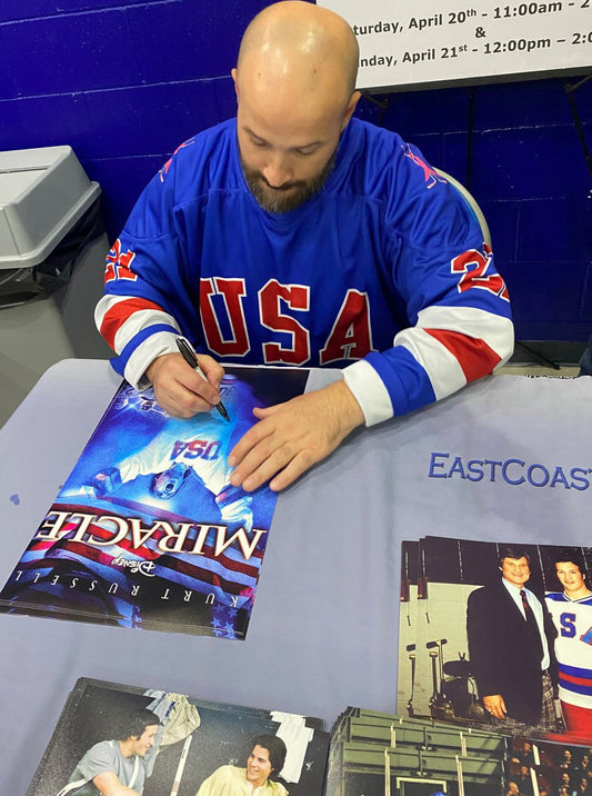 Miracle Poster Photo Signed by Patrick O’Brien Demsey ( Mike Eruzione #21 )