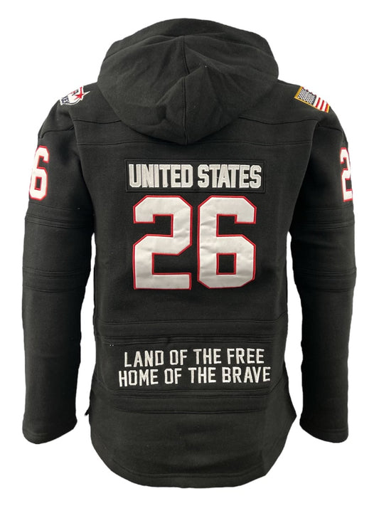 USA Hockey Shield Logo Official Vintage Look Embroidered Black Lace Hoodie