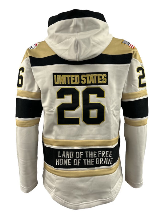 USA Hockey Shield Logo Official Embroidered Vintage White Lace Hoodie