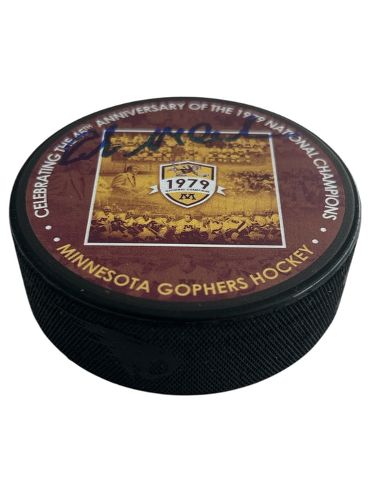 Rob McClanahan Minnesota Golden Gophers National Champs 1979 45th Anniversary License Hockey Puck - Signed