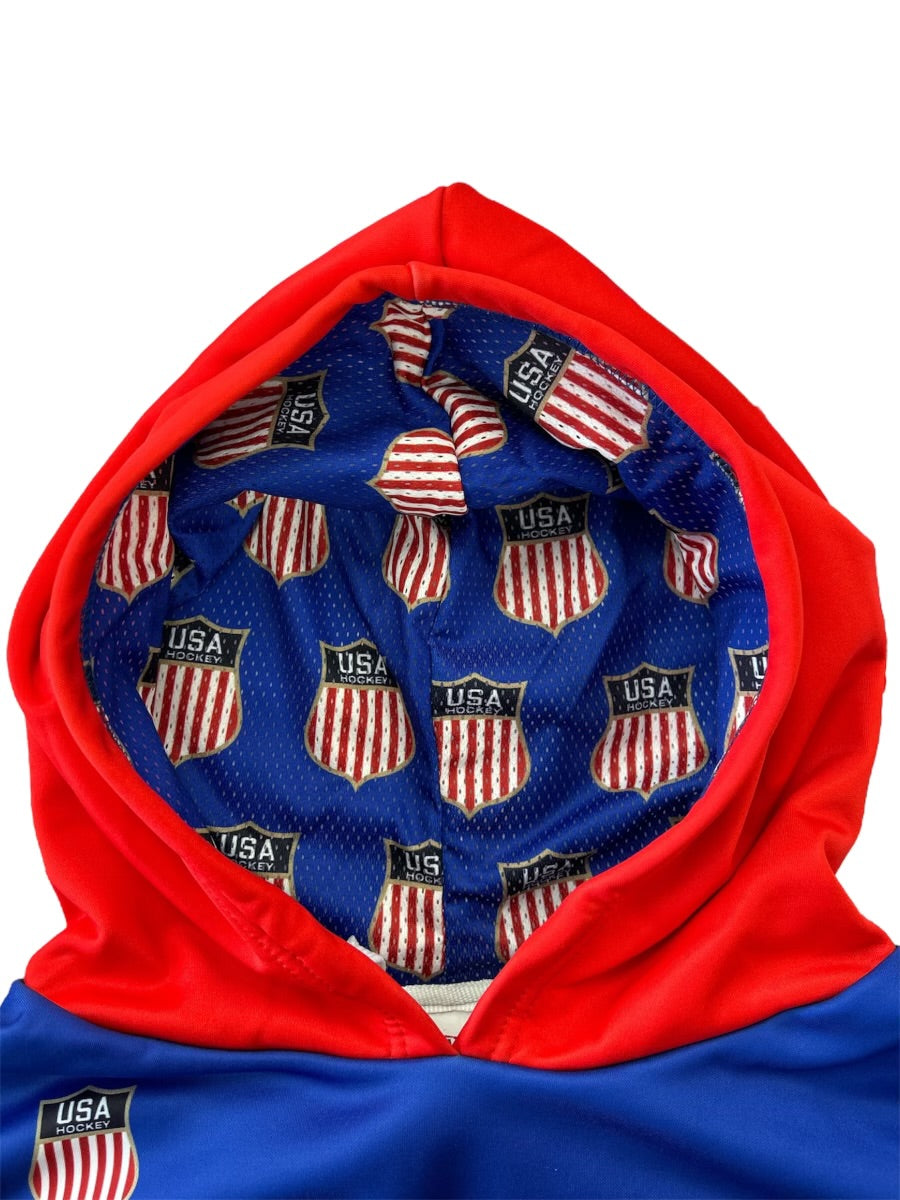 Step up your game with the USA Hockey Replica White Jersey Hoodie! Designed to keep you comfortable and stylish, this sleek white hoodie features the iconic USA Hockey shield, perfect for showing off your team pride. Lightweight and moisture-wicking, it moves with you whether you're on the ice or off. Stay warm, stay cool, and let your passion for hockey shine with this playful and performance-ready hoodie!