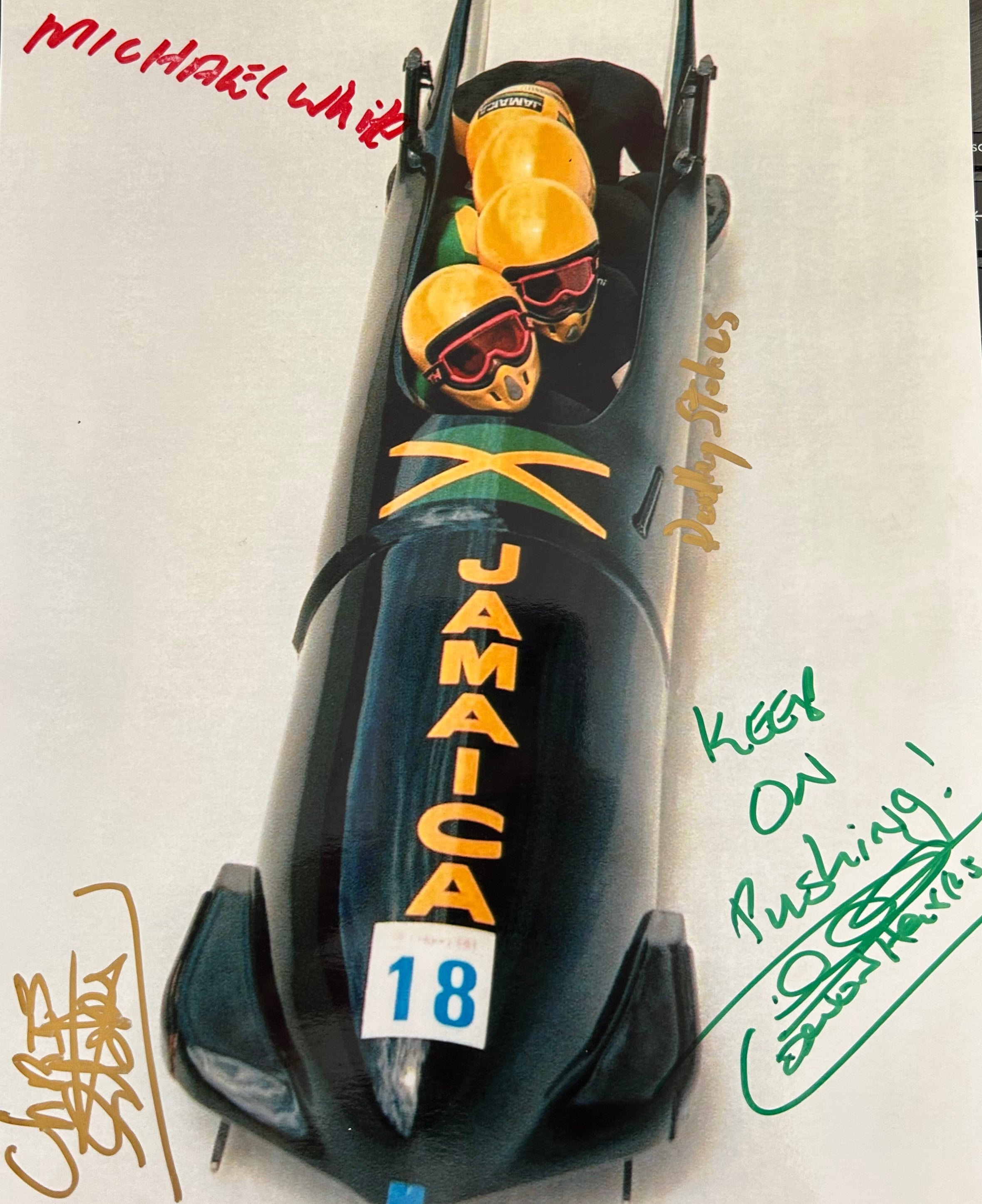 Jamaica Bobsled Bobsleigh team Official signed photograph 8"x 10" Cool Runnings
