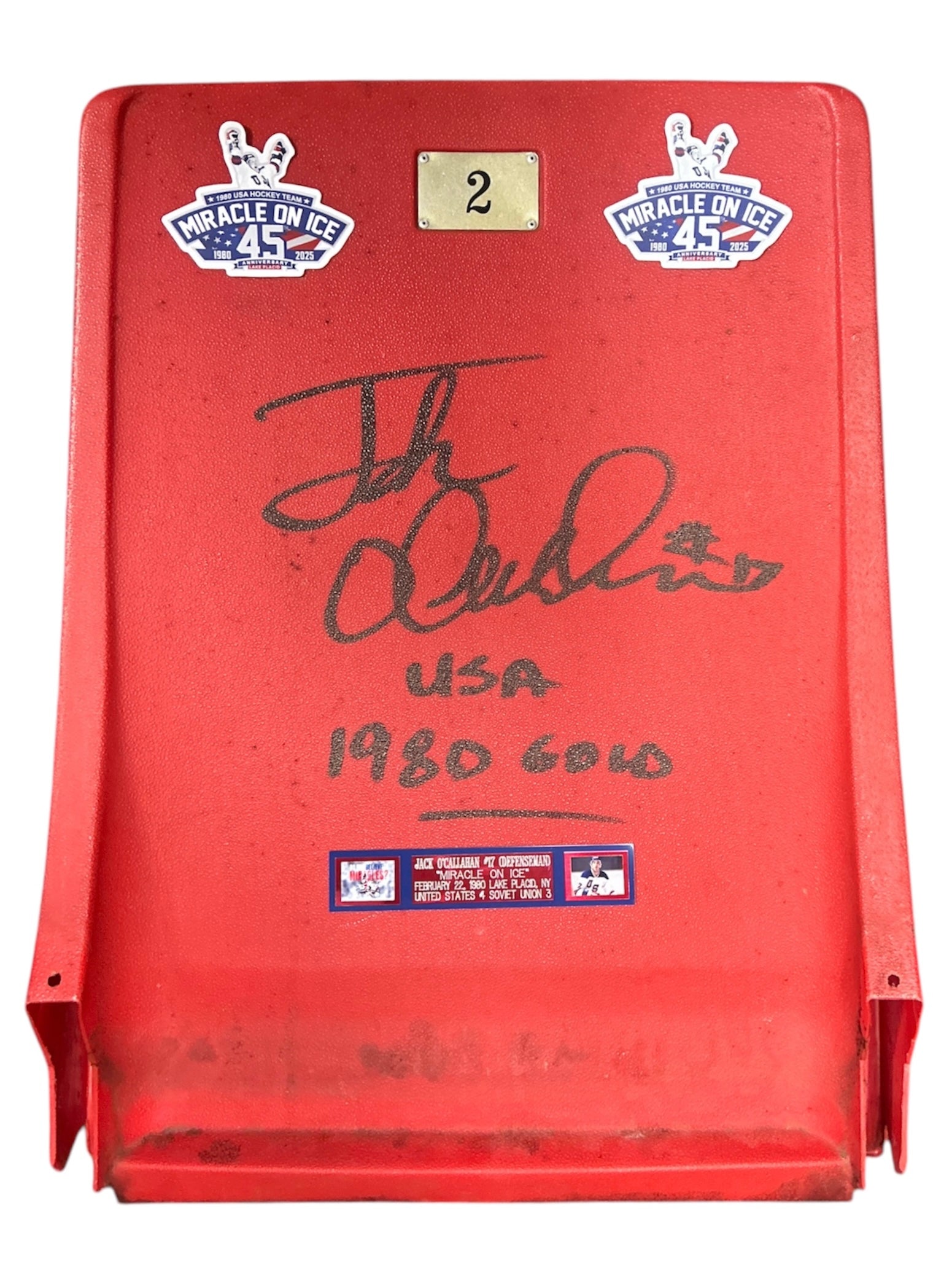 Jack O'Callahan 1980 Gold Signed 45th Anniversary Miracle on Ice Arena Seat Back