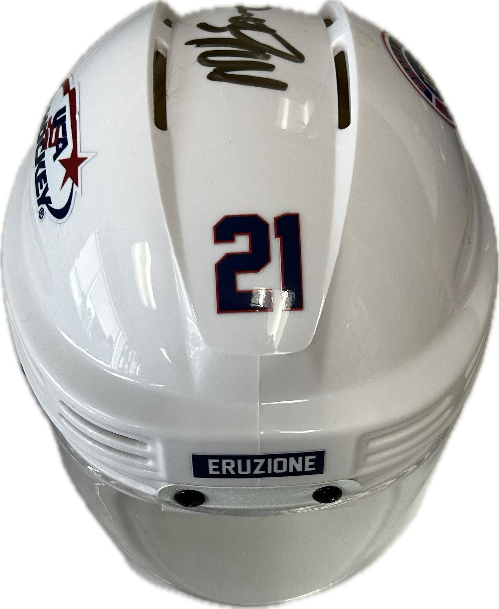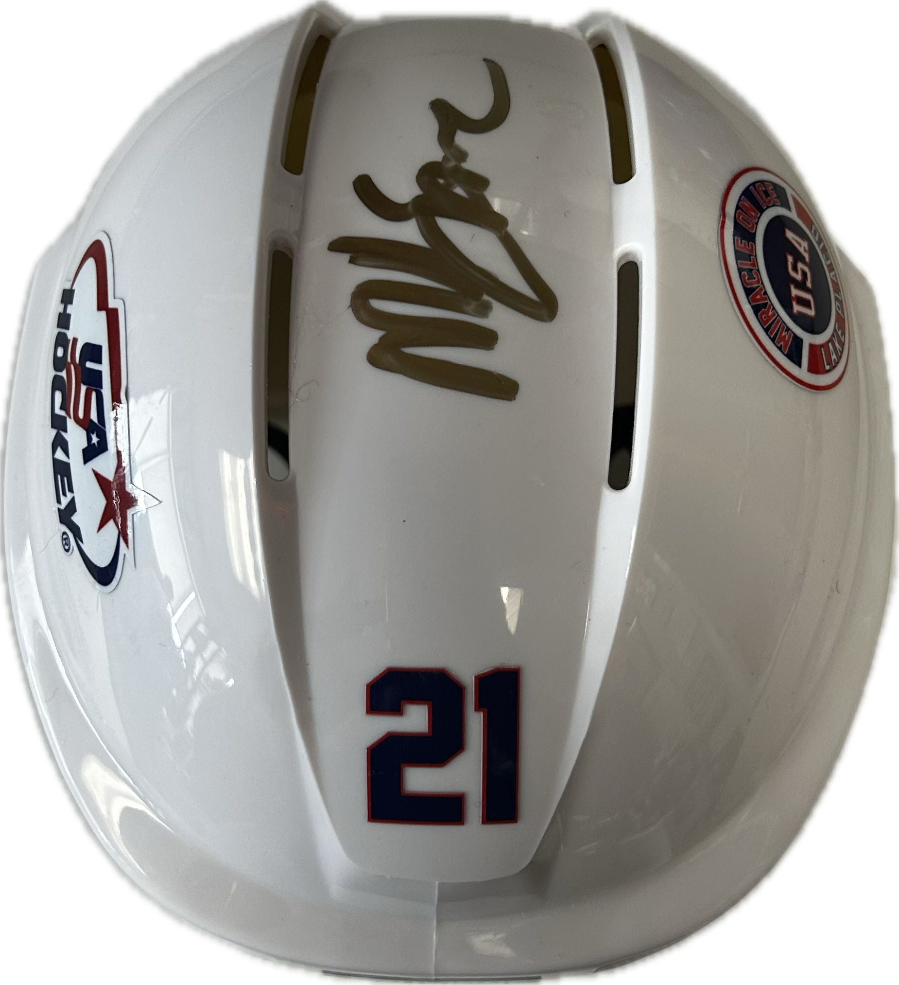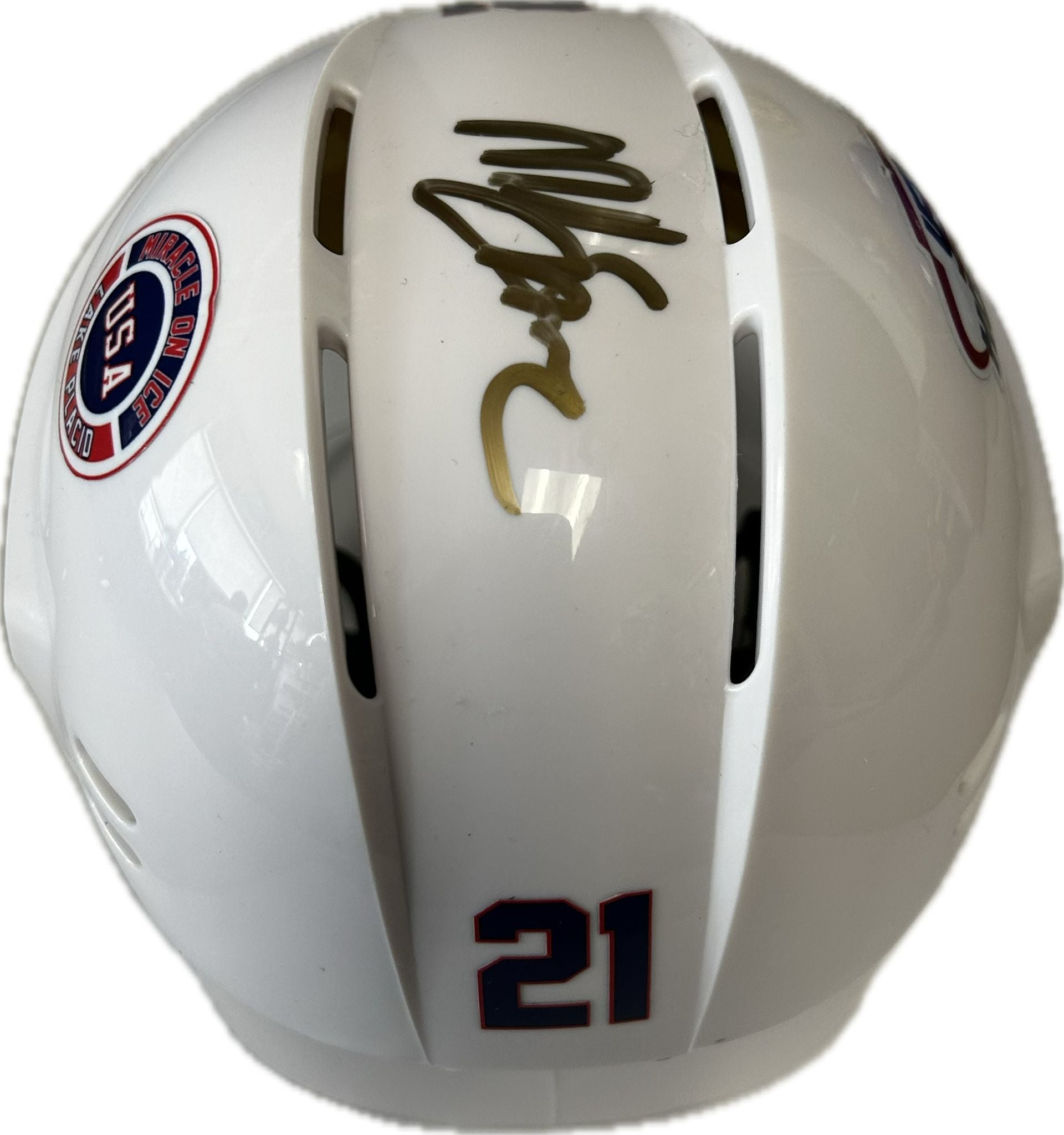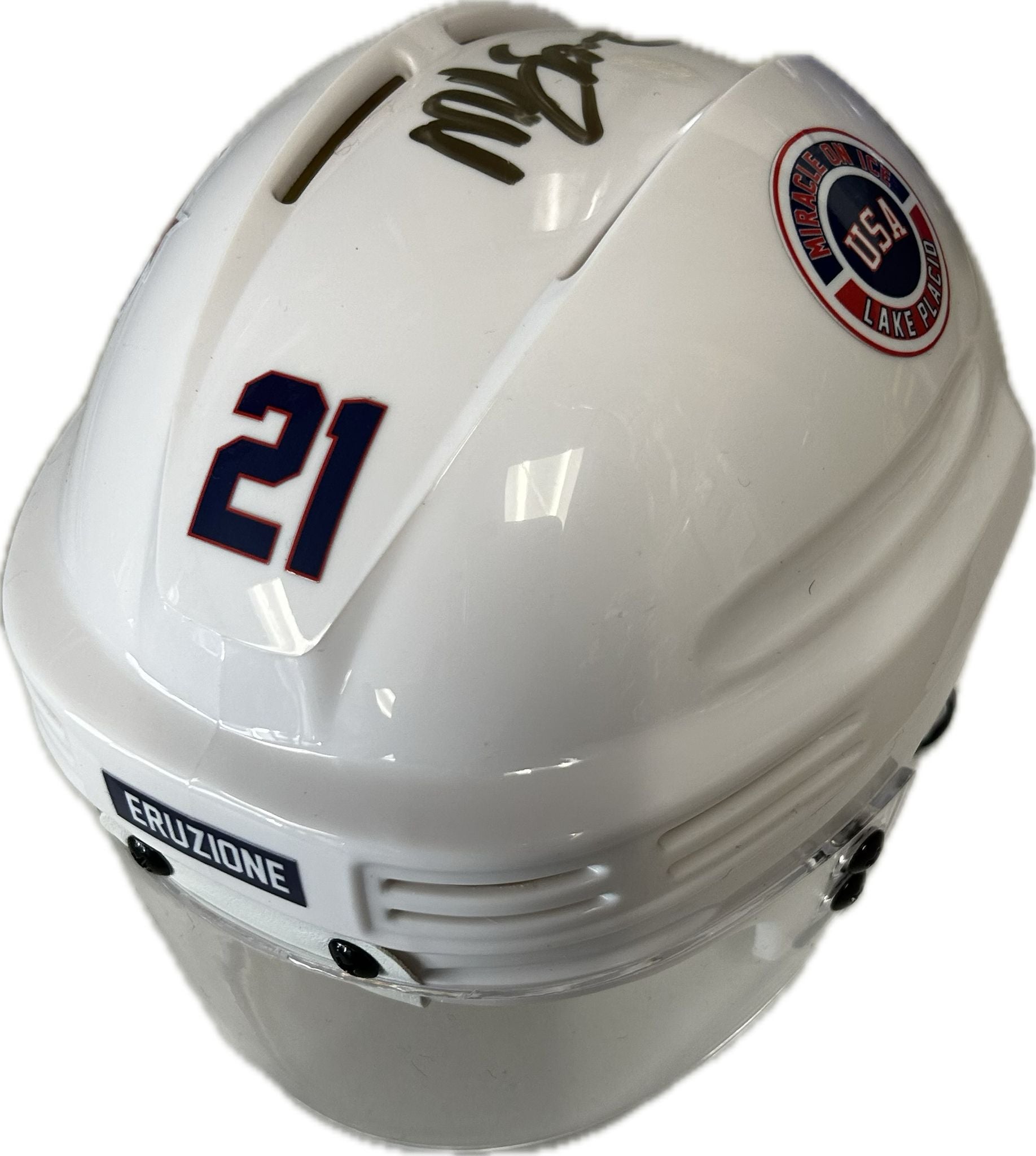 This mini helmet has been personally hand-signed by Mike Eruzione