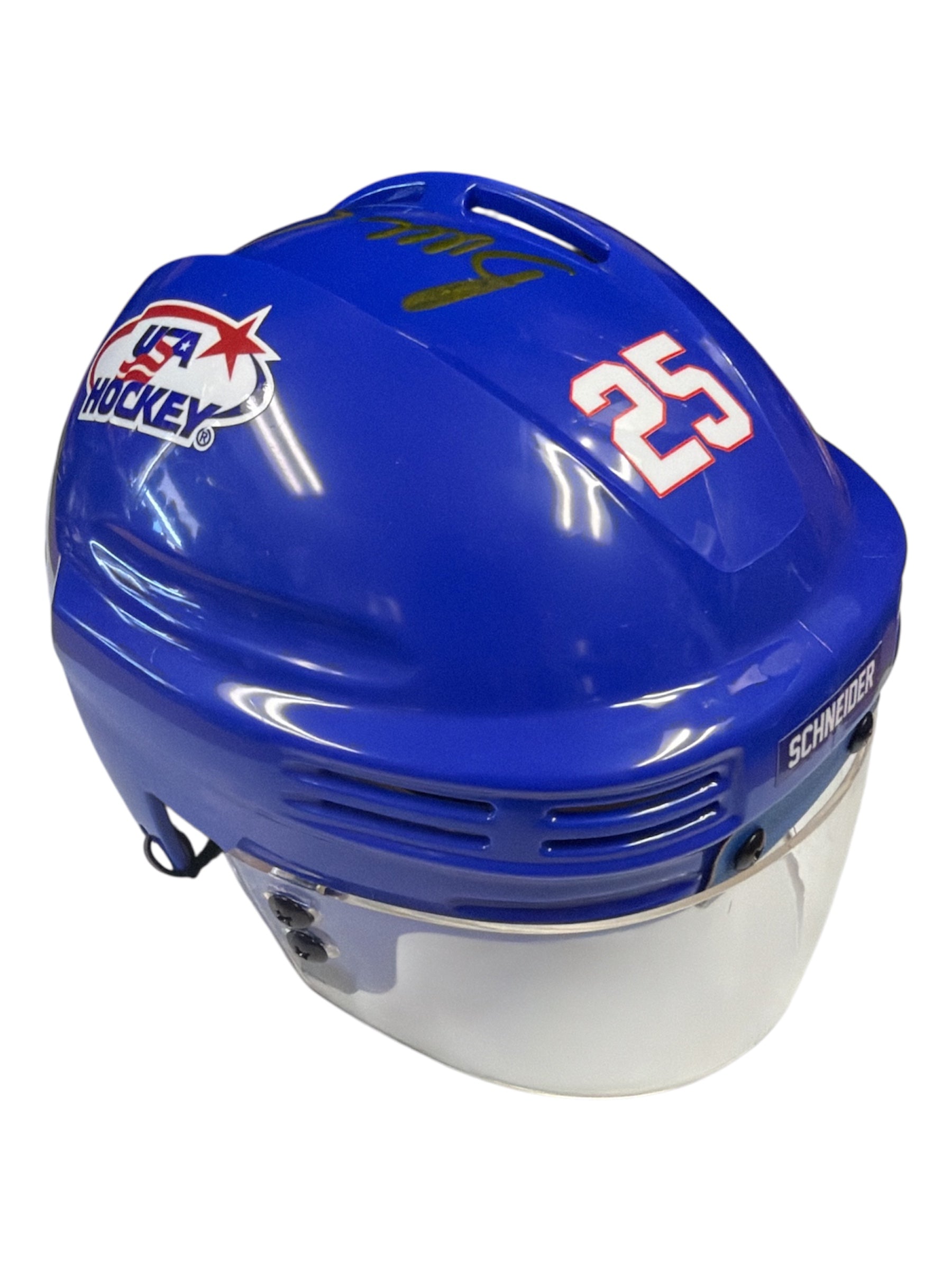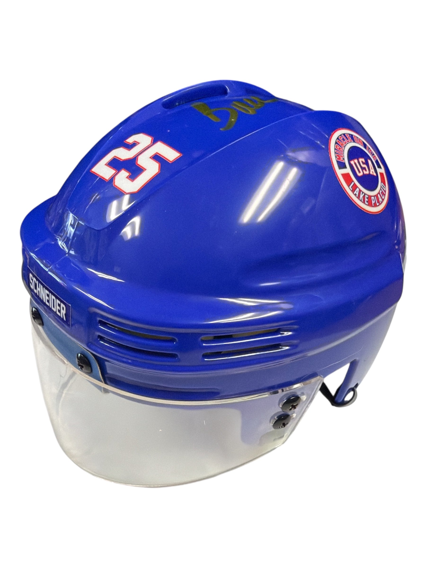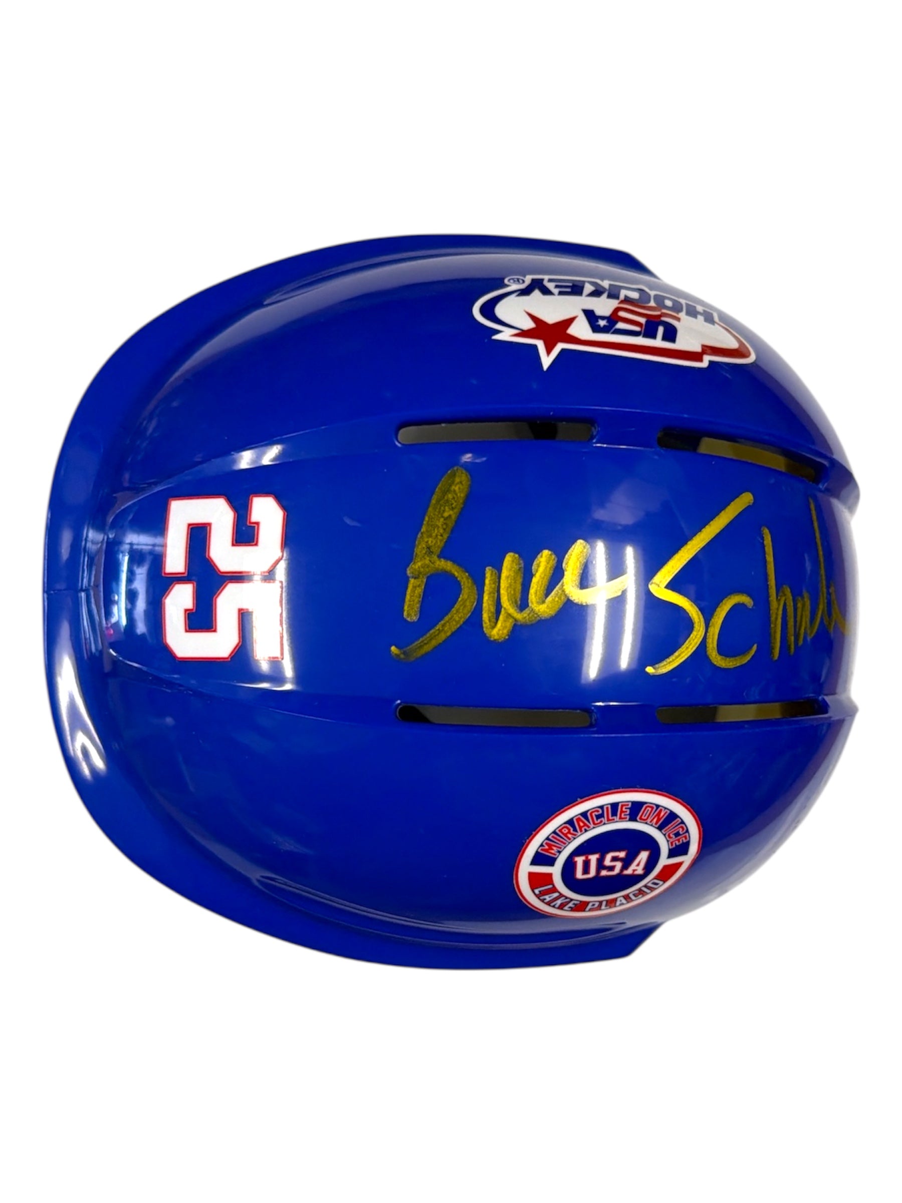Buzz Schneider Signed USA Hockey Miracle on Ice Blue Mini Hockey Helmet