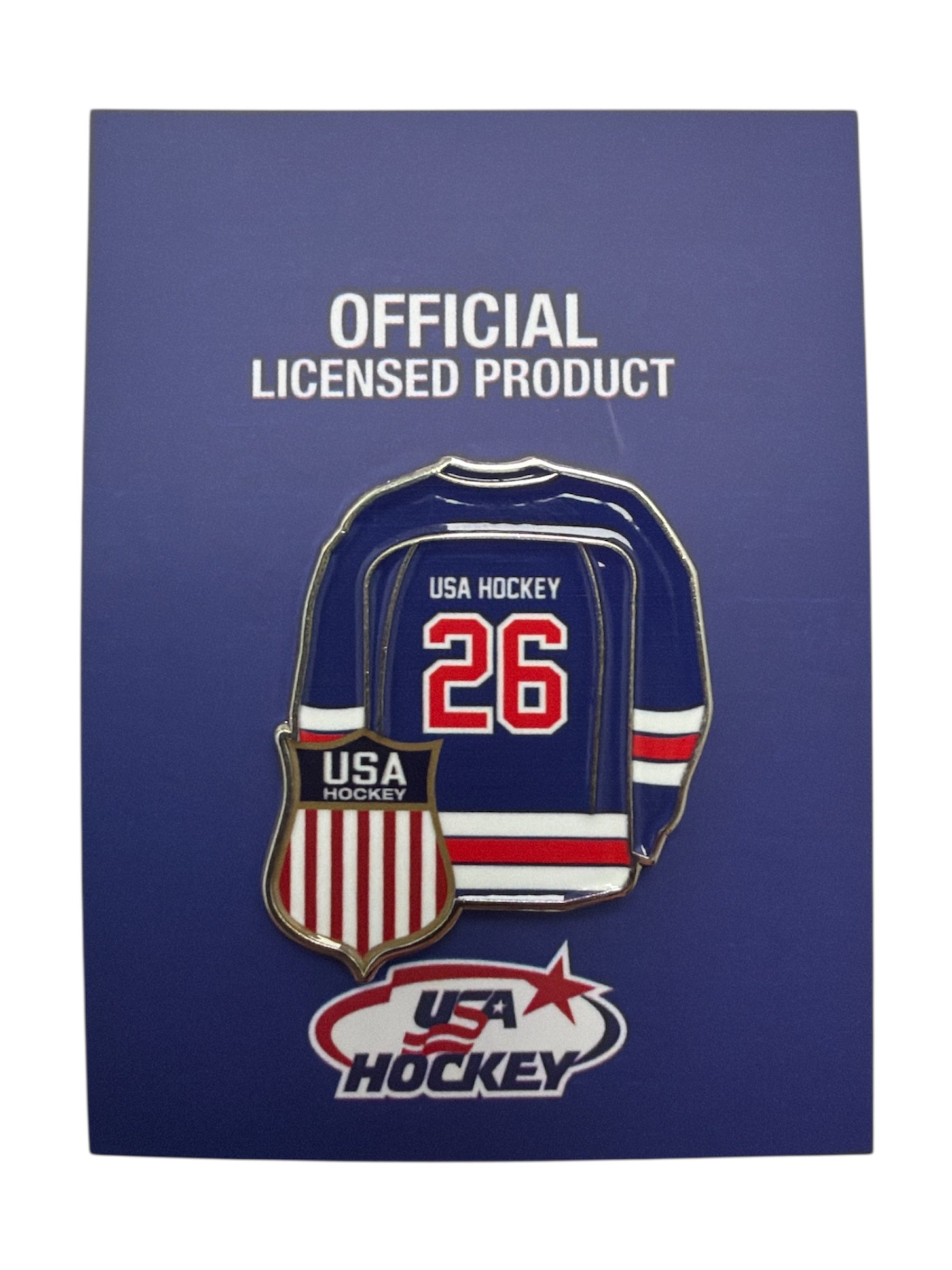 Represent your love for hockey with the official USA Hockey Jersey Lapel Pin. Made with high-quality materials, this pin showcases the iconic USA Hockey Shield and adds a touch of class to any outfit. Show off your passion for the sport wherever you go.