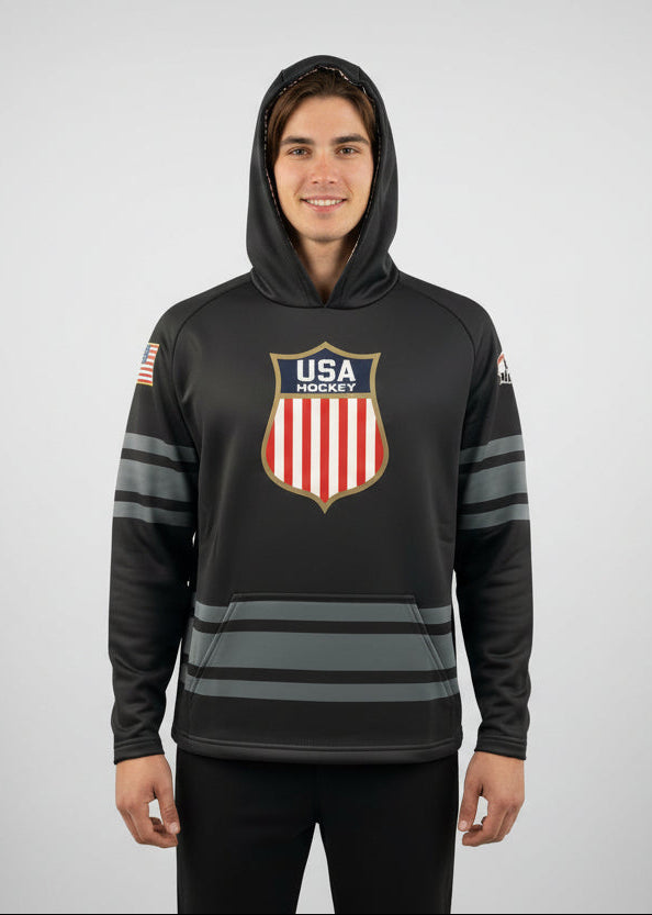 USA Hockey Shield Logo Official Black Performance Hoodie