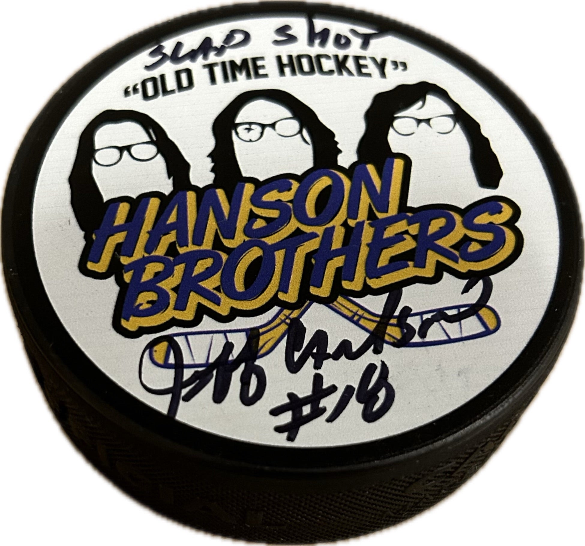 Slap Shot Chiefs Hanson Brothers Hockey Puck Signed by Jeff Carlson #18