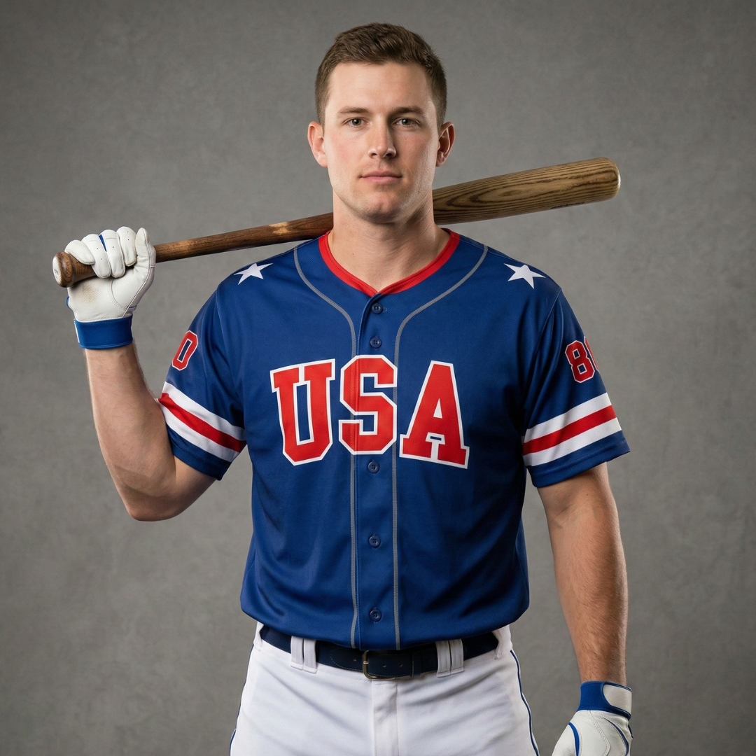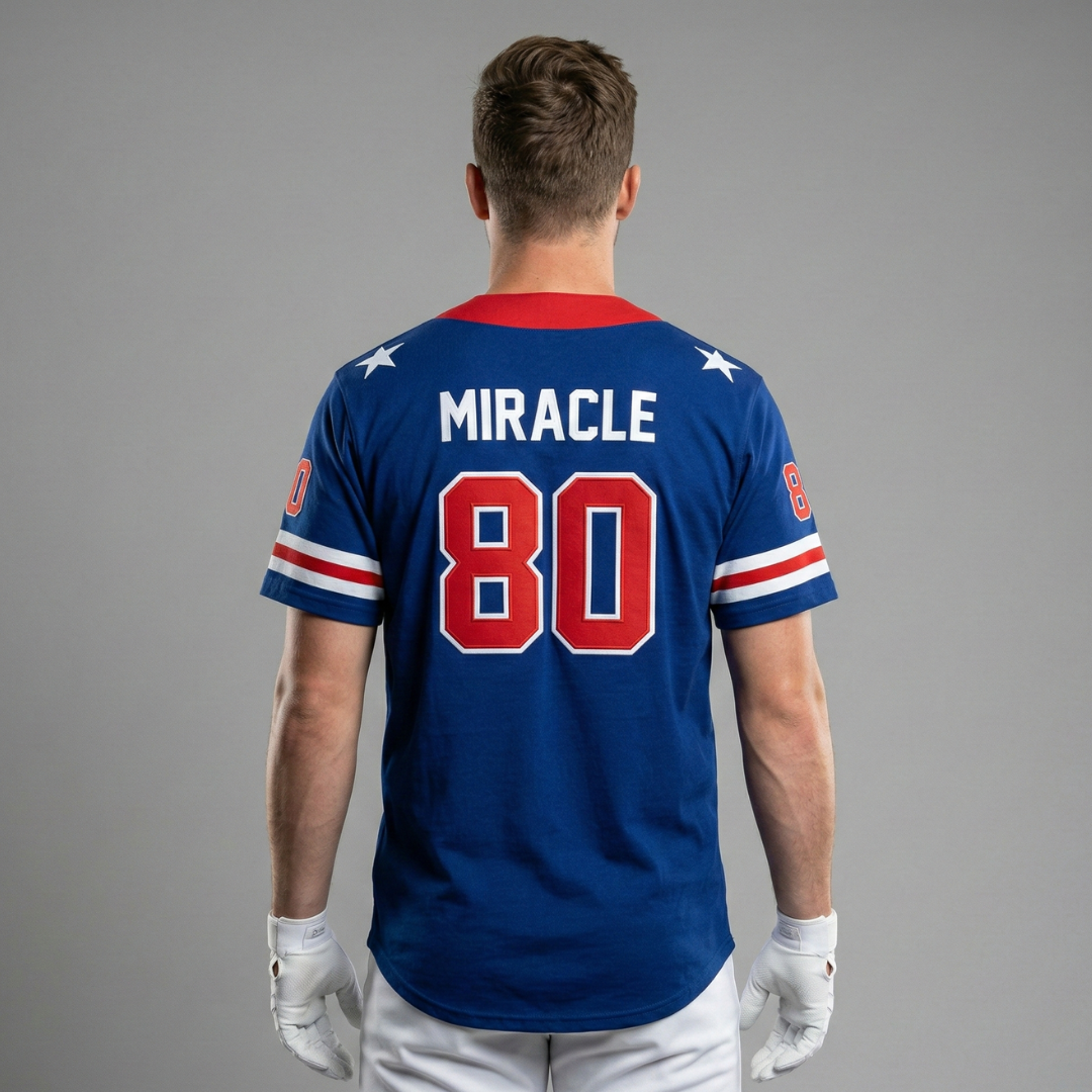USA 1980 Miracle Embroidered Cotton Baseball Jersey Blue