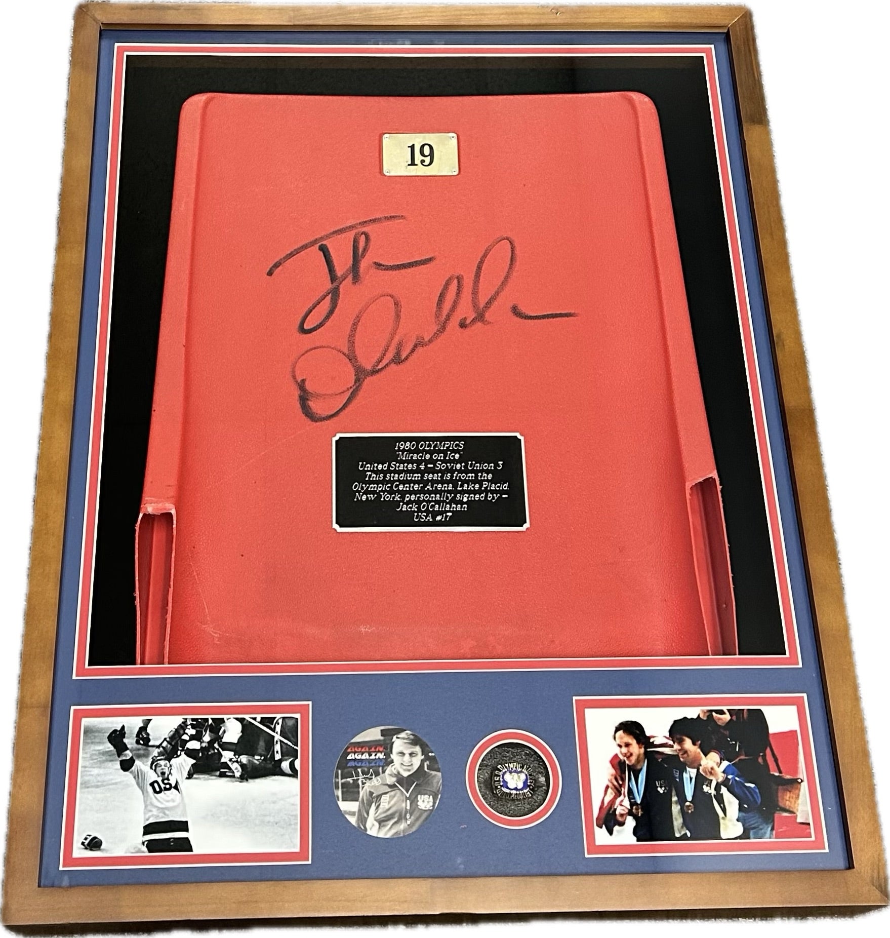 1980 Miracle On Ice Arena Seat Back - Signed by Jack O'Callahan- FRAMED