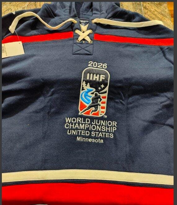 IIHF World Juniors 2026 Navy Embroidered Lace Hoodie- Will ship by 01/16
