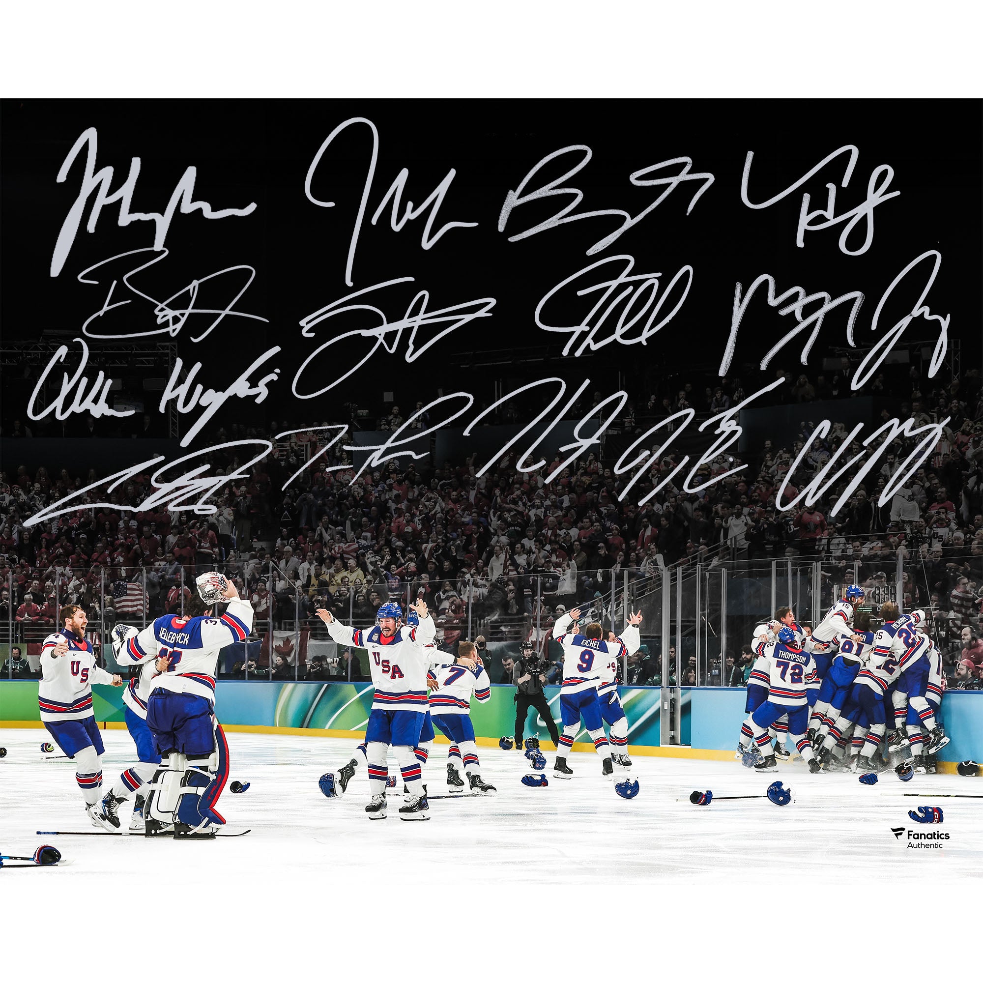 PRE-SALE Team USA Autographed Fanatics Authentic 16" x 20" 2026 Winter Olympics Gold Medal Team Celebration Photograph with Multiple Signatures - ships by 8/1/26