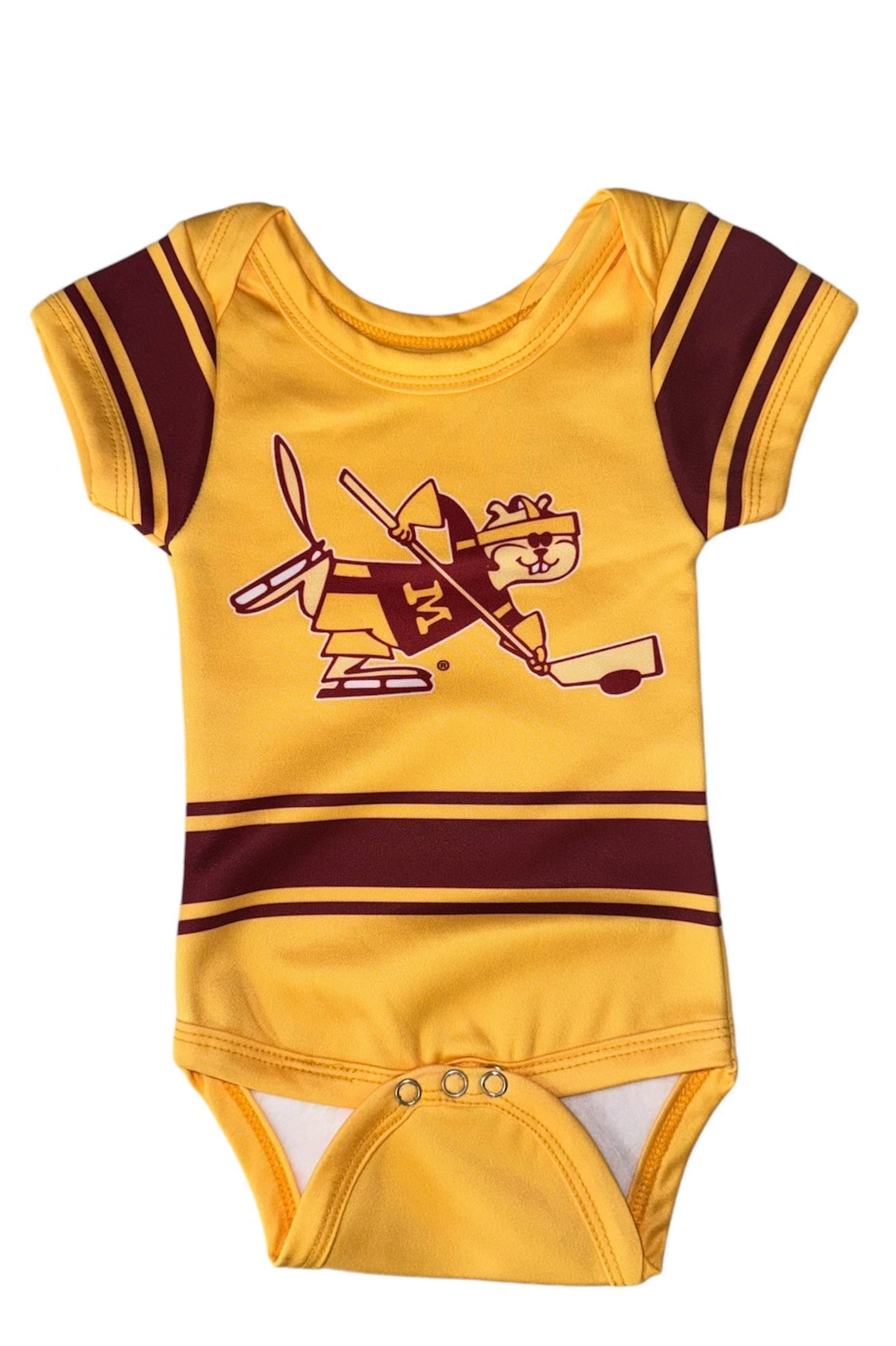 • OFFICIALLY LICENSED APPAREL - Minnesota Golden Gophers Bodysuit Onsie. Made from heavy 4 way stretch performance materials. This onsie will keep your littlest fan cool and comfortable while showing off  Minnesota Golden Gophers pride on game day.