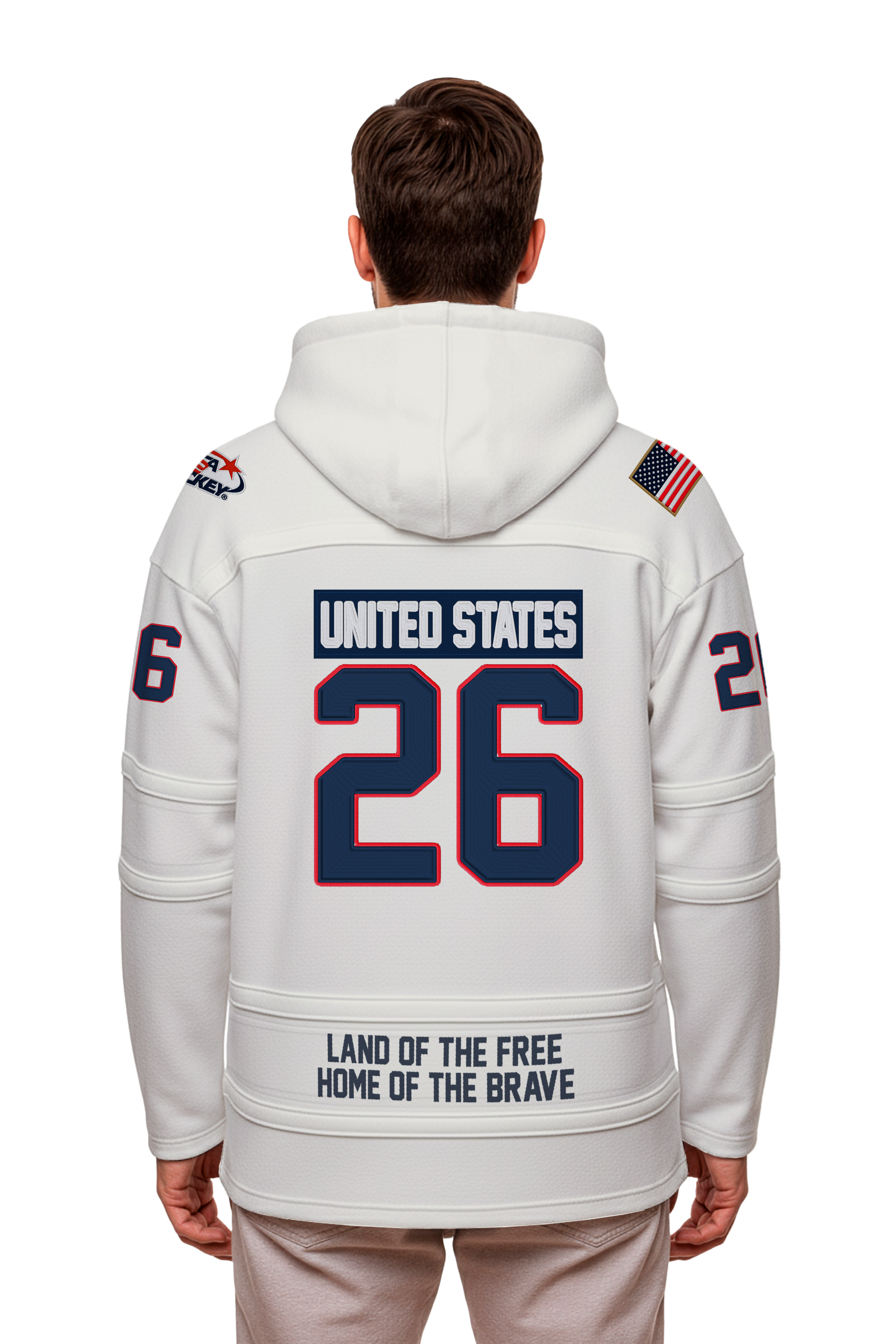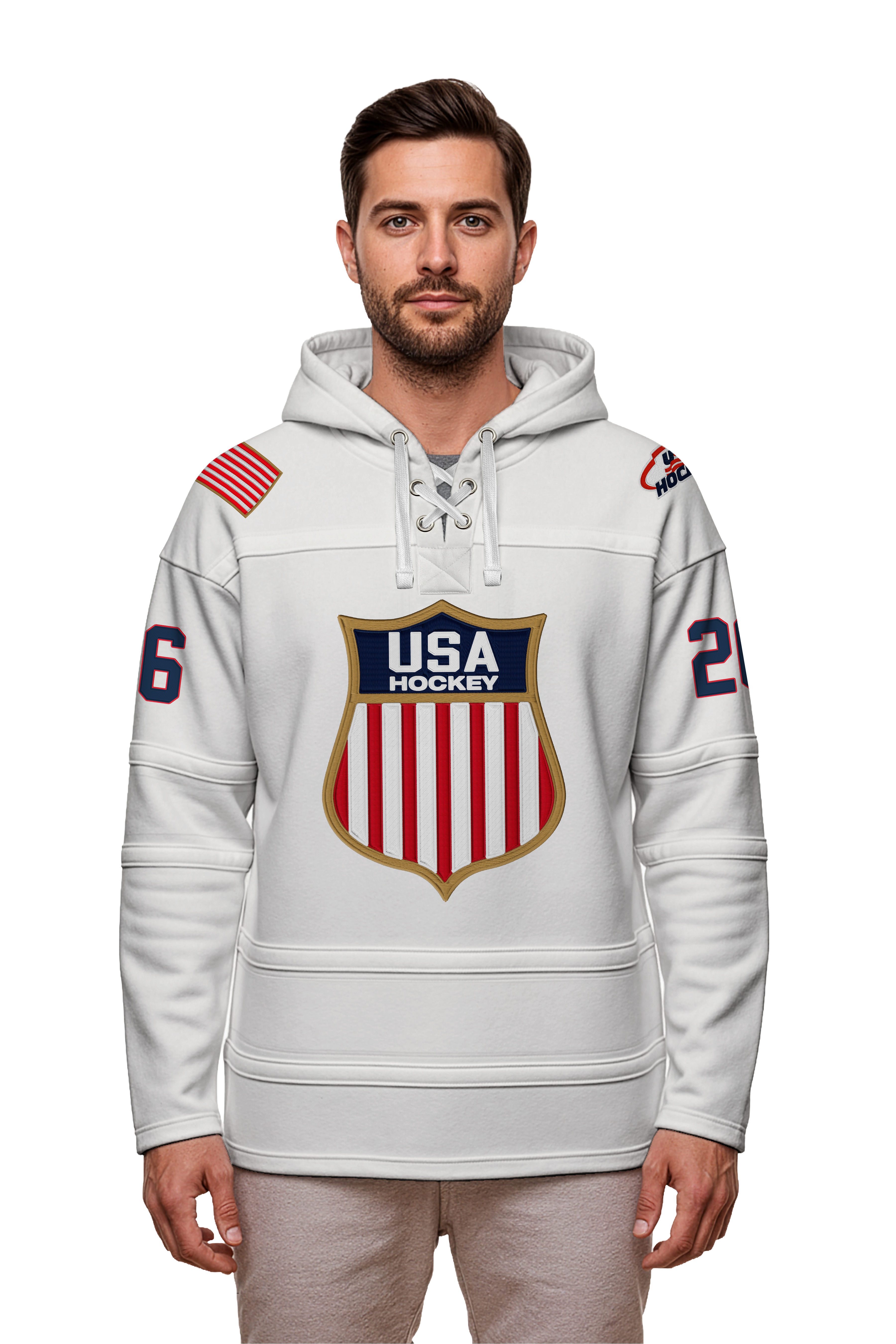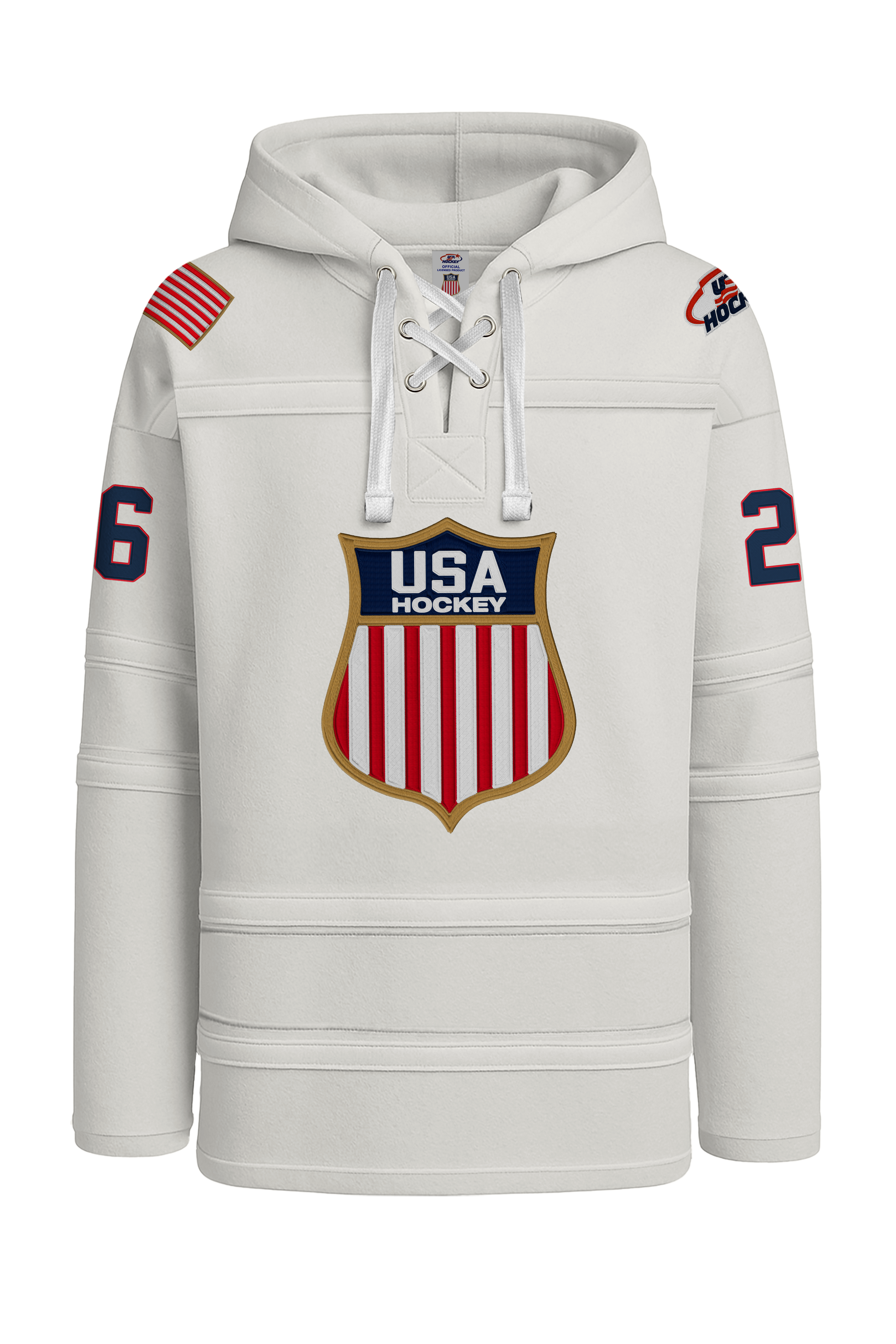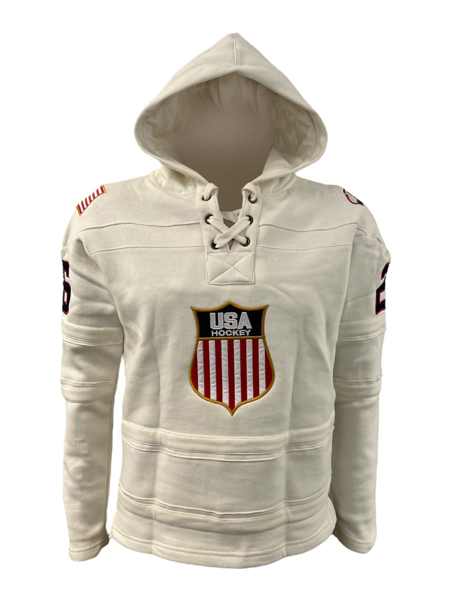 USA Hockey Shield Logo Official Vintage Look Embroidered White Lace Hoodie
