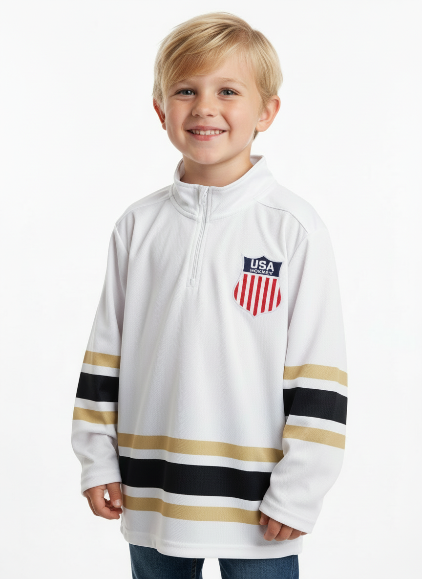 USA Hockey Shield Logo Official Vintage White Youth 1/4 Zip Pullover